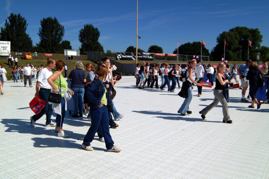 Nuestra exclusiva gama de suelos para eventos al aire libre es la solución líder mundial para el acceso temporal a eventos y la protección del suelo.