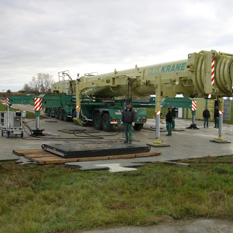 Siendo la salud y la seguridad un aspecto fundamental de los proyectos de parques eólicos, nuestras vías de transporte de alta resistencia son duraderas, resistentes y fiables, y soportan grúas de diversos tamaños.
